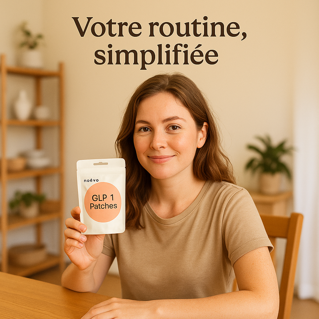 Du réveil au dernier mail, le patch Noeva GLP-1 s’intègre naturellement à votre journée active : le matin, on le pose et on part ; au travail, appétit apaisé et moins de fringales pour rester focus ; entre deux rendez-vous, il continue d’agir sans rien à gérer ; le soir, énergie plus stable et envies mieux maîtrisées. Discret sous les vêtements, zéro contrainte, 100 % routine — un soutien doux pour une silhouette affinée, à votre rythme.
